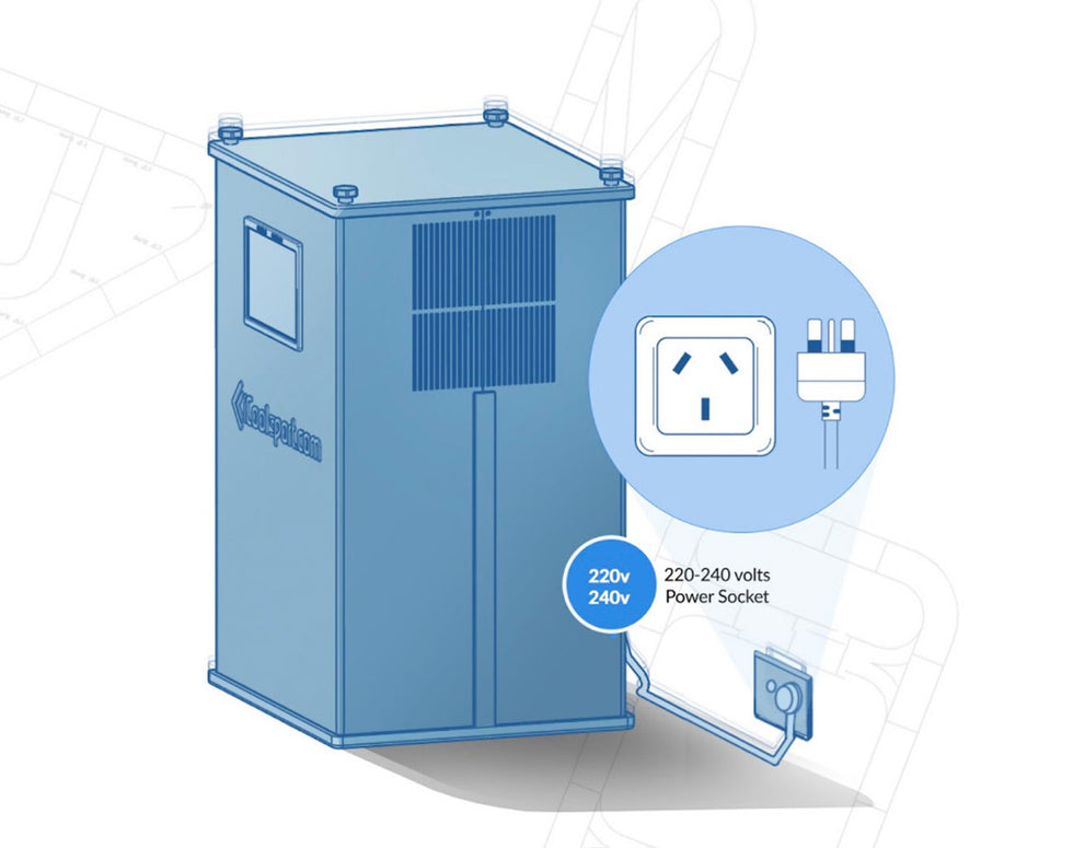When first set up and connected to a standard water tap and a household power outlet, the holding tank will fill and will be constantly refilled automatically as water is used. The powerful chiller can chill all of the water in the holding tank from 22ºC tap water common in many cities, down to as low as 4ºC in as little as 1 hour. The desired operating temperature of the water and the length of each shower is set on the large 10” touch screen.