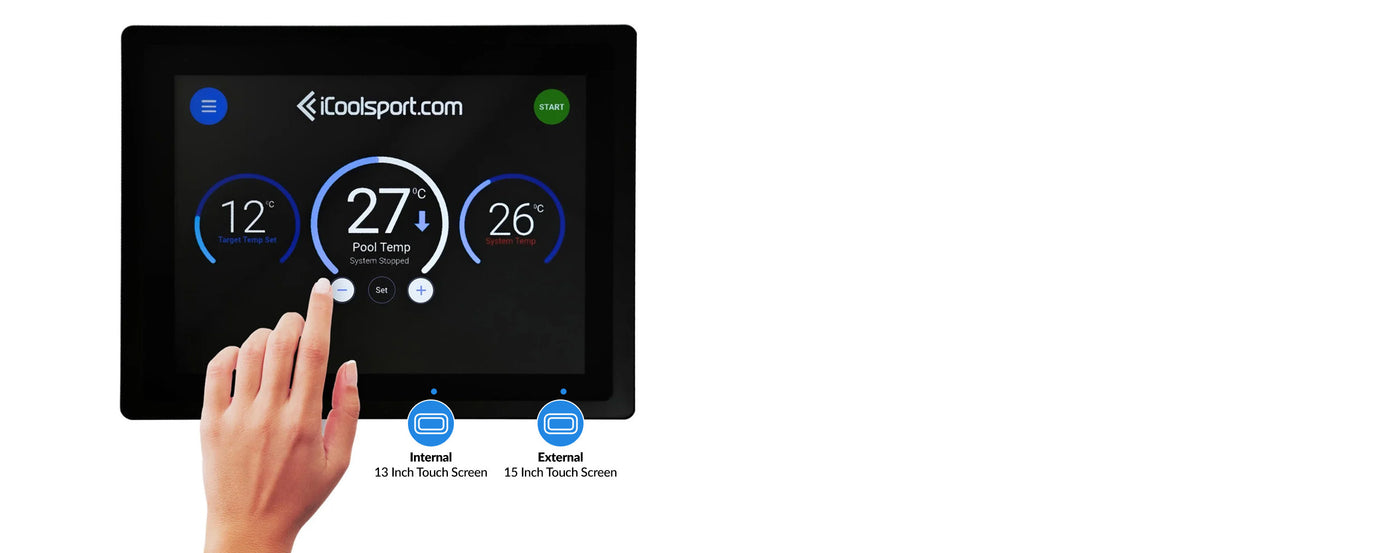 This version comes with the world's fastest Turbo Mini ice bath chiller, which can be hidden up to 25 meters from the tub and controlled by the wall-mounted 15" touchscreen.