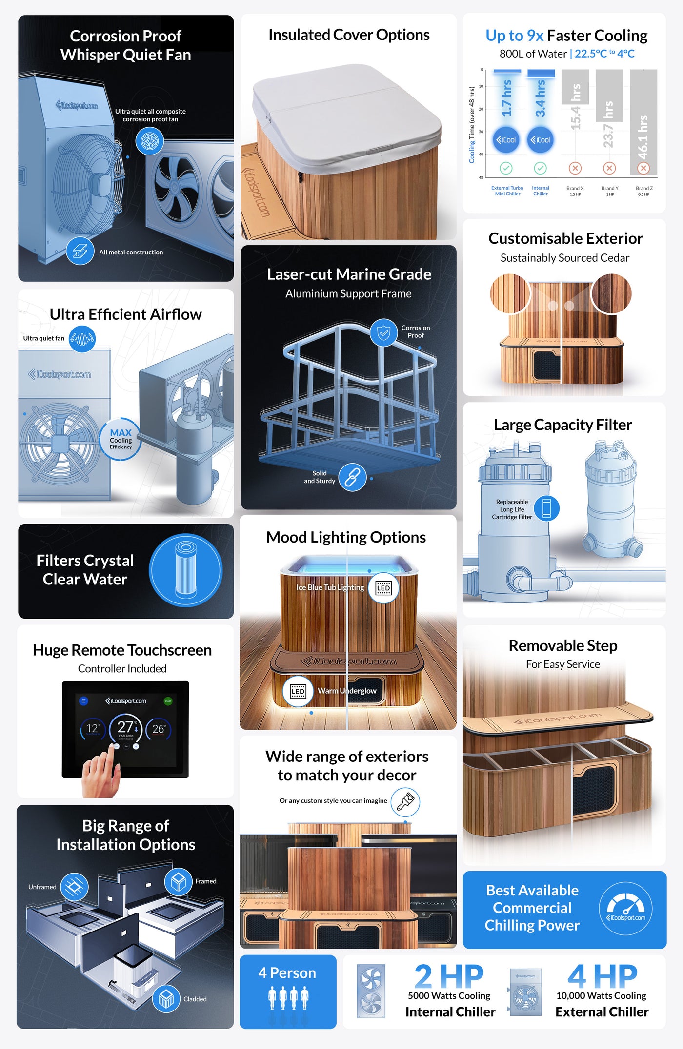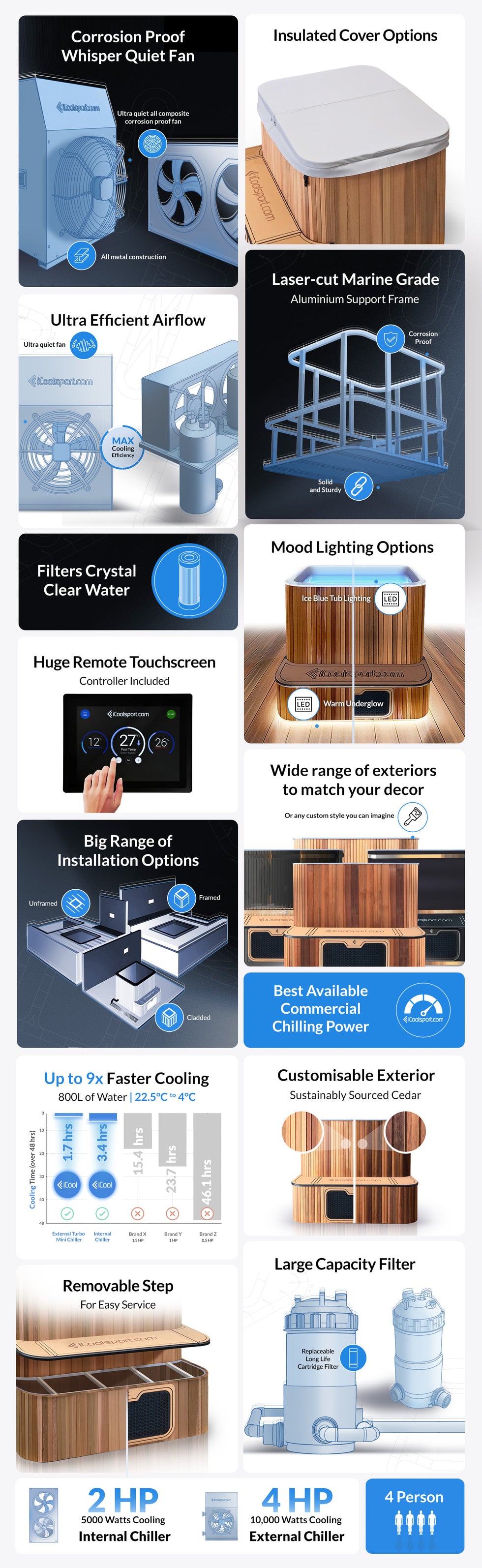 Ultra Cedar with Inbuilt 2kW Heater and External Turbo Mini Chiller 4ºC (39F) to 40ºC (104F)