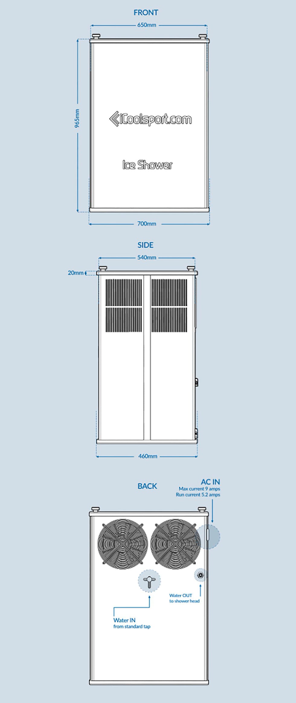 *The Ice Shower 20 version has a larger holding tank and additional cooling power for continuous commercial operation
