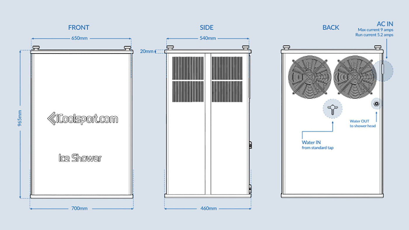 Experience the pinnacle of ice shower technology with the iCoolsport Ice Shower. This system features a 4000-watt cooling system, with ultra-quiet operation, and extremely high thermal efficiency, all housed within an entirely original design manufactured in Australia by iCoolsport.