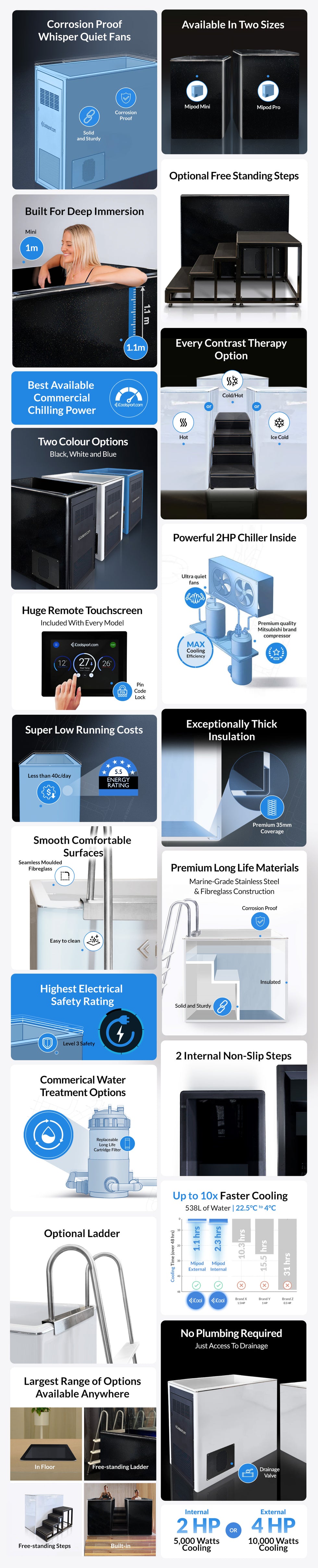The MiPod Pro is an award winning world-class fibre glass cold plunge