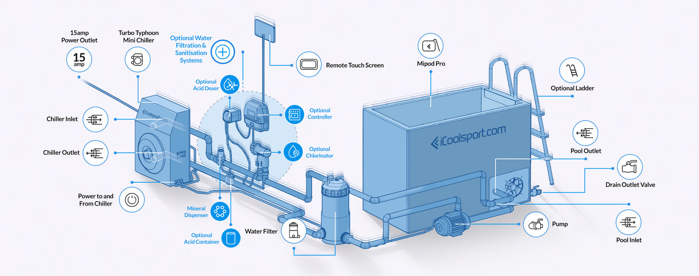 The MiPods have the most powerful chillers in the industry, easily capable of freezing water, but in the real world most leading experts recommend no lower than 4º for safety against hypothermia. However, if you are confident of your ability to handle extreme cold we offer the choice of a 2º minimum setting.