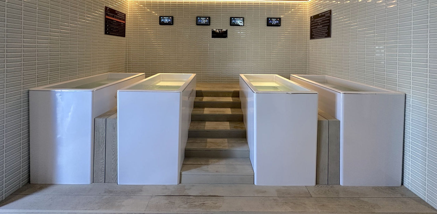 MiPod Pros are well suited to above-ground wellness rooms and fit up to three people in the 600L tub with the option to sit or stand.